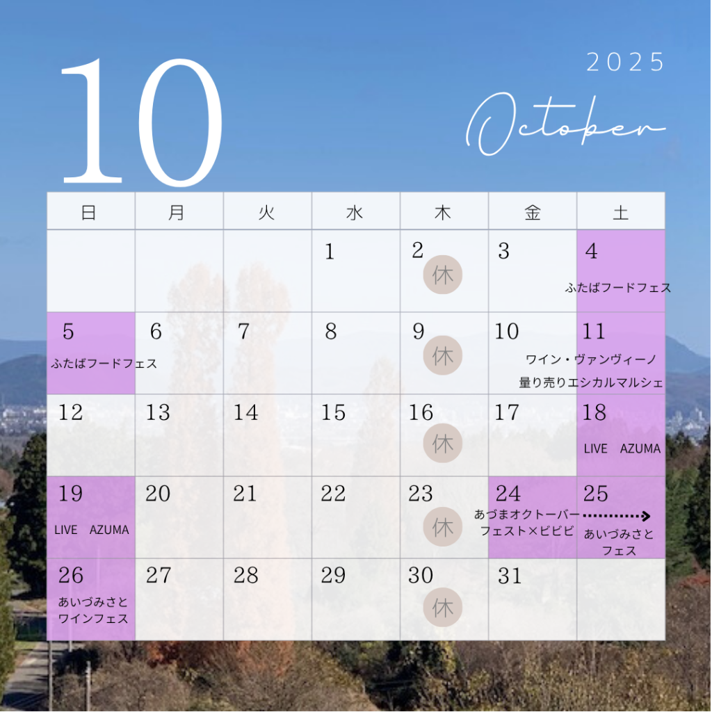 さて、2025年10月のセラードア(ワイナリー試飲販売所)の営業日は、