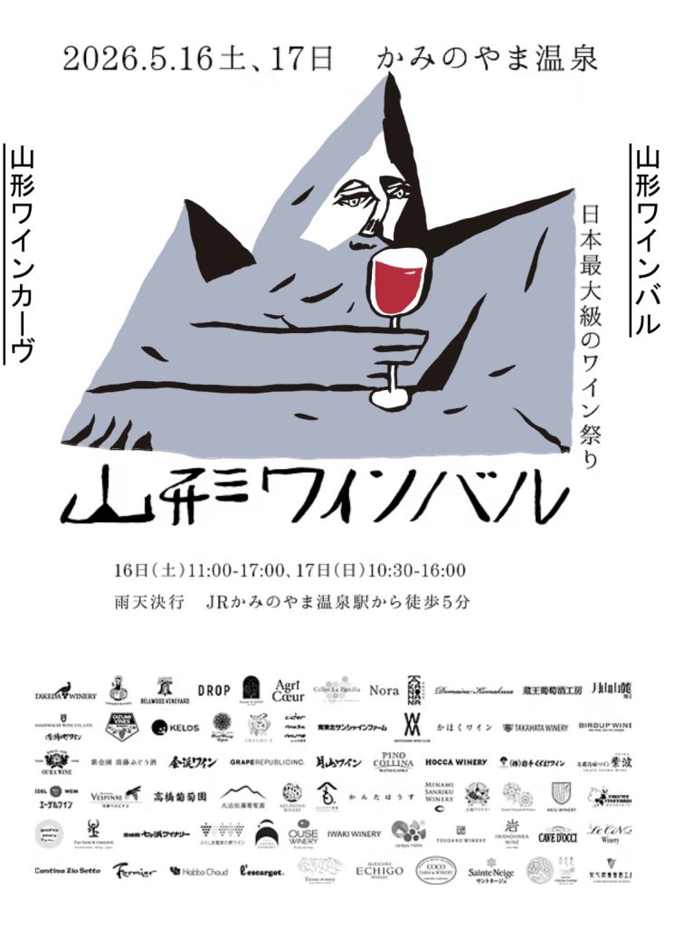 日本最大級のワイン祭り「山形ワインバル 2026」が今年も かみのやま温泉 にて開催します。